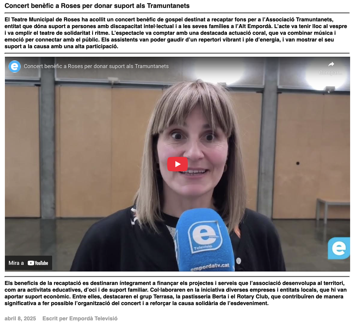 El Teatre Municipal de Roses ha acollit el Cor Gospel Girona destinat a recaptar fons per a l’Associació Tramontanets