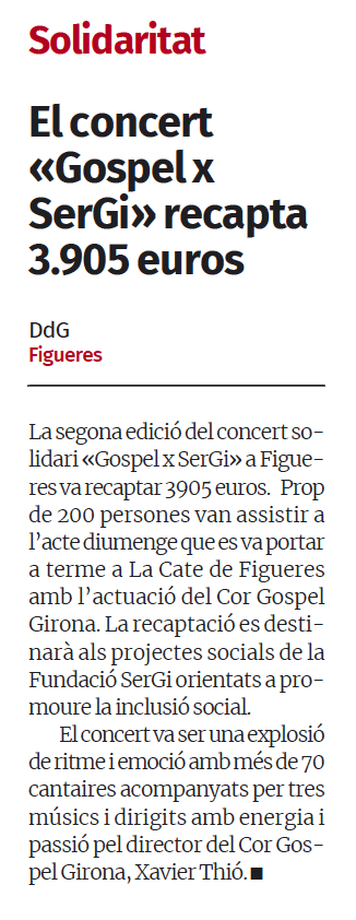 La segona edició de “Gospel x Ser.Gi”, que tingué lloc el propassat diumenge, 12 de gener, fou un èxit.